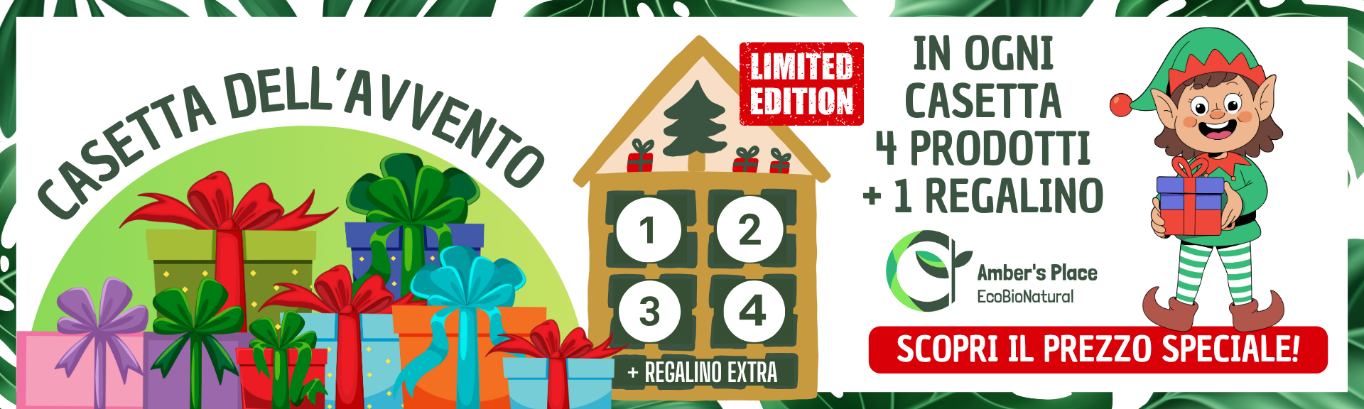 4 prodotti skincare viso e corpo a marchio Amber's Place da scartare, uno per ogni domenica di Avvento.