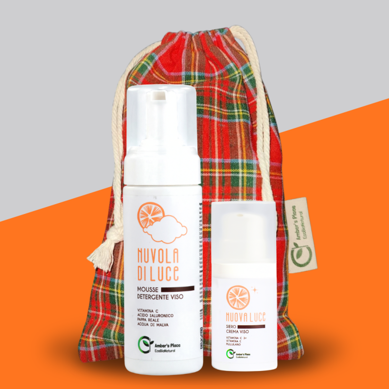 150ml - MOUSSE DETERGENTE ILLUMINANTE NUVOLA DI LUCE. Soffice come una nuvola, deterge in modo gentile, contribuendo a trattare iperpigmentazioni, discromie cutanee, segni d’espressione ed eccesso di sebo. La sua formula super attiva, ricca di Vitamina C, Acido Ialuronico e Pappa Reale, contrasta le imperfezioni di tutti i tipi di pelle, anche quelle più delicate e sensibili. Stimola inoltre la produzione di collagene ed elastina, per una pelle più tonica ed elastica, e regola l'eccesso di sebo aiutando a prevenire brufoli e punti neri. Profumazione ipoallergenica, leggera e floreale. PRODOTTO CON IL 98% DI INGREDIENTI NATURALI.
